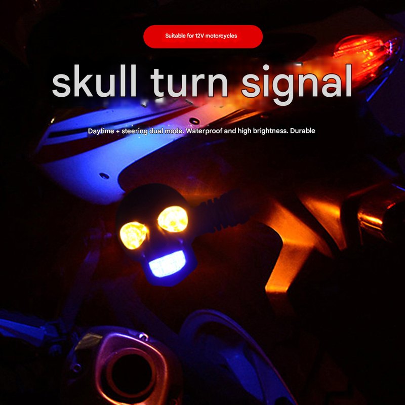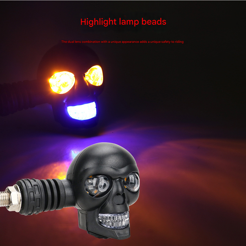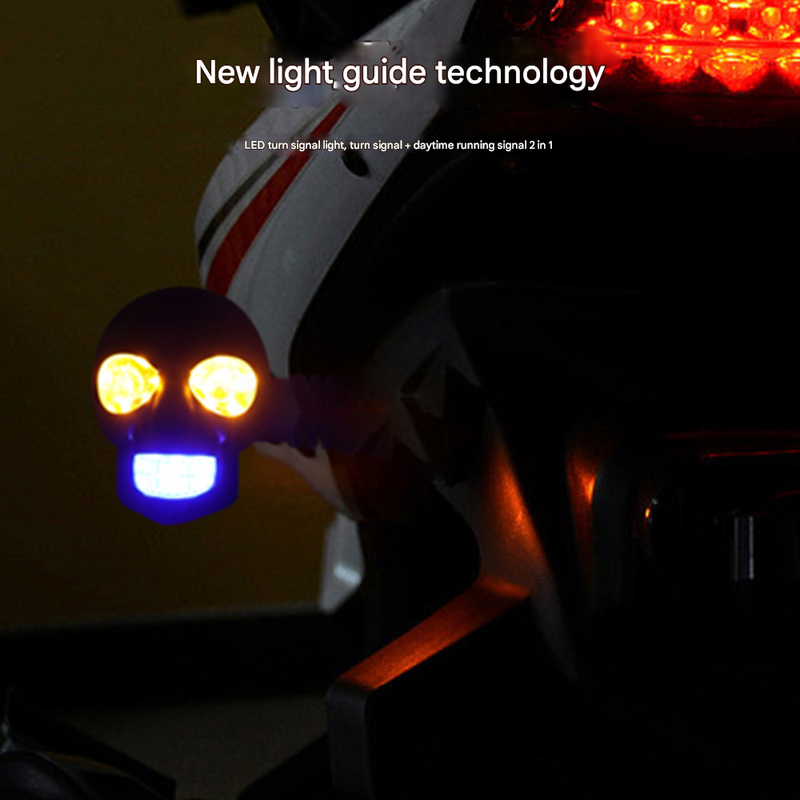 2V skull motorcycle turn signal LED white and yellow two-color modified headlight motorcycle auxiliary light